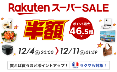 【楽天市場】楽天スーパーSALE │ 買えば買うほどポイントアップ!ポイント最大46.5倍